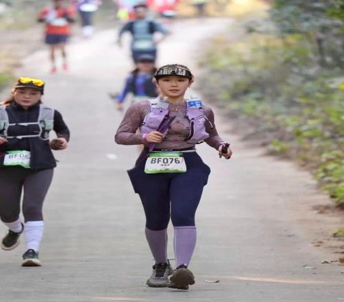 比赛前程,赵诗琦跑得挺轻松。但是她也发现自己一出发就喜欢冲的节奏并不对。这也是导致她去年首野后程跑崩的原因。大概在十来公里的时候,她一度还摔了一跤,那个时候她已经跑在了第八名,也正是在这个点,让她遇见了同行来参赛的朋友。在他们的鼓励和陪伴下,让本想着能拿到完赛奖牌就好的赵诗奇重新燃起了“那就再冲冲”的念头。一向下坡胆怯的她跟着朋友们的节奏也放开了胆去跑。